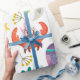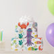 Cute colourful cartoon sea animals over white background. Fish, crab, octopus, sea- star. Customisable wrapping paper template