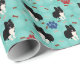 Cute cartoon style Shetland Sheepdog with a scattering of bones and paw tracks. This design is intended to tile seamlessly.