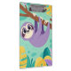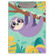 Cartoon sloth hanging upside-down from a branch clipboard