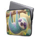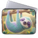 Cartoon sloth hanging upside-down from a branch laptop sleeve