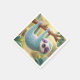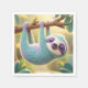 Cartoon sloth hanging upside-down from a branch with a sleepy grin. Exaggerated googly eyes