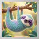 Cartoon sloth hanging upside-down from a branch poster