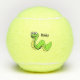 These tennis balls have a cartoon snake drawing with a big smile and big white eyes who is in colours of bright green and yellow. Customise your name on the front and back with the template.