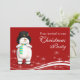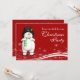 Funny looking cartoon Frosty the Snowman on a red snowy background. Very cute and fun Christmas party invitation.