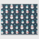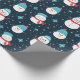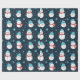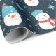 Cartoon Snowmen Dark Blue White Pattern Present Wrapping Paper