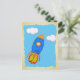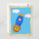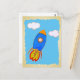 Cartoon Space Rocket In Blue Sky Torn Paper Postcard