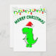 Cartoon T Rex Cute Dino Santa Christmas Hat Holiday Postcard