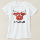 Cartoon red Taurus bull with a ring in its nose and the word Taurus. The Taurus is the bull. Great birthday gift for people born in April or May.