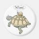 Cartoon turtle and snail on a magnet. The snail is having a great time riding on the turtle's back. "Whee!"