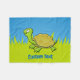 Cartoon illustration of a happy turtle. Custom text.