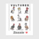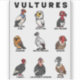 Nine different, beautiful vultures in cute cartoon style: King Vulture, Egyptian Vulture, Red-headed Vulture, Bearded Vulture, White-backed Vulture, Hooded Vulture, Turkey Vulture, California Condor, and Indian Vulture.