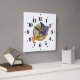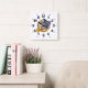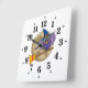 Cartoon Wizard Owl Flying on Broom Square Wall Clock