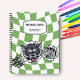 video game controller breaking trough a green and white retro chequered background. To make it extra special, it is also monogrammed and personalised with name or initials or any text you like. This cool notebook is perfect for video games lovers, a great addition to your kids school supplies.