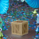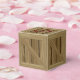 A favour box that looks like a wooden crate. It has customisable text on the top. Cute for small gifts or treats.