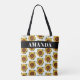 Cartoon Yellow Custom Name Sunflower Pattern Tote Bag