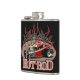 The flask itself is fine. It’s a cheap flask, obviously bought in bulk, however am prepared to overlook that. Given that it is a personalized item, I would have liked to have seen gift boxing instead of the generic packaging. Terrible printing, and/or quality. It’s a cheap, tacky vinyl. It is not cut straight and is also applied in a way that it is overhanging the bottom, causing the glue to catch on items and it will eventually roll and tear, damaging the wrap.