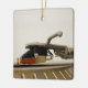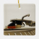 A 12-inch LP being played. The stylus is in contact with the surface by wikipedia: A phonographic record (also known as a gramophone record, especially in British English), often simply recorded, is a storage medium for analogue sound in the form of a flat disc with an inscribed modulated spiral groove. The groove usually starts near the periphery and ends near the centre of the disc. Initially, the discs were commonly made of shellac; starting in the 1940s, polyvinyl chloride became common. Since - phonograph, record, vinyl, disc, disco, 12 inc, 33 giri, long playing, lp record, christmas gift souvenir ceramic ornament