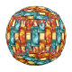 Image of rectangles that overlap each other and with a spacing, may resemble plates of golden or rusted metal that was 'beaten' and this caused them several small dents or notches.
