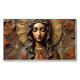 "This striking design presents a portrait of the Virgin Mary as a detailed wood carving or relief sculpture, rendered in rich, warm brown and reddish-brown tones. She is depicted with a tranquil, contemplative expression, hands clasped in prayer, and is framed by a rustic, textured halo. The rough, earthy texture of the wood grain provides a powerful sense of ancient, grounded spirituality. This design is highly suitable for products with a rustic, spiritual, or devotional theme. Imagine it on wooden plaques, religious art prints, handcrafted items, or home decor that evokes a traditional, artisan aesthetic."