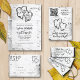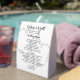 Wedding menu, double-sided, paper table tent for the reception. The design is in black and white with two hearts background and is perfect for a casual celebration. This design matches our rustic, birch tree bark wedding collection. Customize black text with names of the bride and groom at the top. Location and date of event is followed by menu title. All appetizers, entrees, and other menu selections are listed in a paragraph. Add spaces as needed. All text will print the same on both sides.