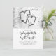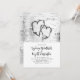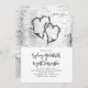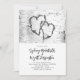 White birch wedding invitation template. Text is at the bottom with an image of two hearts carved into the “wood” above. For a casual, rustic wedding, this template has three places for printed black text with names in bold lettering. The reverse also contains a realistic birch bark image.