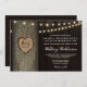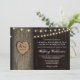 Carved Initials Old Oak Tree Wedding Invitations - features an old wood background with an old oak tree and string lights.