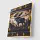 Carved Moose Design in Forest Setting Square Wall Clock