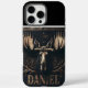 A wooden sign with a carved moose head and antlers, with the name Daniel carved below.