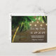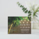 Carved Palm Tree Beach Lights Save The Date Cards - design features a beach background with string lights and a wooden swing hanging from a palm tree. You can carve initials into the tree for added decor. See matching products in this design found in the collection on this page.