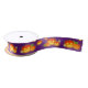 Halloween themed satin ribbon features carved pumpkins on a purple background.