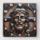 Carved Relief of Jesus With Crosses Background Square Wall Clock