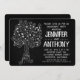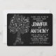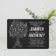 chalkboard modern black and white love tree engagement party invitation with carved heart and your initials.