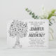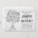 Simple modern black and white love tree engagement party invitation with carved heart and your initials.