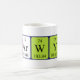 Carwyn spelled out as C Ar W Y N (Carbon Argon Tungsten Yttrium Nitrogen) on a mug for the scientist in you.