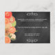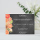 The cascading abstract floral design makes this chalkboard wedding response card especially perfect for a fall wedding, but is beautiful for spring and summer weddings as well. Any bride and groom who appreciate the natural beauty of flowers will love this wedding set. Abstract roses in subtle shades of peach, orange, red, brown and green compliment each other beautifully in this chalkboard bridal reception card. Having a garden wedding? This reasonably price, modern, chic wedding card is perfect for you. You can easily personalise this trendy wedding set by using the given template or customise font colours by clicking "customise" and selecting the text boxes to change the fonts and colours.