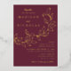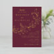 Botanical wedding invitations featuring your names and wedding details in gold foil lettering divided by a vine of sketched leaves with a merlot background. The elegant gold foil wedding invitations coordinate with our Cascading Leaves wedding collection.