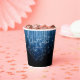 Sapphire blue lights, like the rainfall of glass on a chandelier, cascade down the face of this striking birthday paper cup that also features an eye-catching signature font for the text 'Sweet Sixteen'. This glamourous party night graphic against a black background is also available in a variety of other colours to suit your chosen theme. Add your name and birthdate using the provided template. Search ID790 to see other colour options and products with this design.