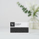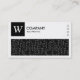 A business card template with a long rectangular image/photo area with a close-up photo of typewriter type leavers which alternatively can be replaced with your own image or photo and with a panel in the top left for a monogram or logo which includes a "W" as an example monogram which can also be changed. The design is balanced with four small rectangular text based symbols on the right created with the Semaphore symbol font. The white area is also a frame mask making it easy to position and resize a photo underneath. Company name and business type/quote on the front with name and contact details on the back in white on a contrasting dark grey background. Can be adapted to a variety of businesses and other uses.