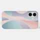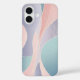 This is a captivating abstract artwork chraacterised by its soft, flowing lines and harmonious blend of pastel colours. The composition features organic, undulating shapes that gracefully interlock and overlap, creating a sense of gentle movement and fluidity. The primary colours include delicate blush pinks, serene sky blues, and soothing lavender purples, with subtle hints of mint green and cream. Fine, delicate white lines weave across and within some of the larger coloured sections, adding intricate detail and visual texture without disrupting the overall minimalist aesthetic. The overall impression is one of calm, elegance, and modern artistry, making it an ideal design for an iPhone case.