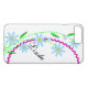 Case-Mate Barely There Plus iPhone 7 Case White Background with Tiny Blue Flowers and Pink Ric Rac