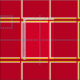This fabric contains a red check pattern with yellow-orange and white highlights.
