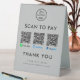Boost your business's contactless payment options with this professional Cash App Venmo QR code scan to pay logo Table Tent Sign. Sleek and stylish, this sign is perfect for displaying at your checkout counter, restaurant table, or anywhere customers can easily scan and pay. Customise the design with your business logo and personalise it with a message.