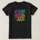 A classic crewneck tee gets a bold upgrade with the phrase Cash Rules All splashed across it in a playful graffiti font. Each word is a different bright colour, with a subtle dripping effect that adds a touch of streetwise style