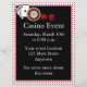 A striking flyer for your next casino night, group trip or party. Design includes playing cards, roulette wheel and dice with card suit border in red, black and white. Easy to customise with the details of your occasion.