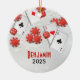 a fun holiday design with a casino theme. Design features four aces, dice and poker chips on grey and white snowflake background. Other items available.