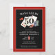Custom age casino or poker party themed birthday party invitation featuring playing cards, dice and poker chips and an editable age in black, red and white. ASSISTANCE: For help with design modification/personalisation, colour change, transferring the design to another product or if you would like coordinating items, contact the designer BEFORE ORDERING via the Zazzle Chat MESSAGE tab or email at makeitaboutyoustore@gmail.com.