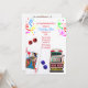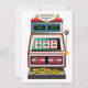 Casino themed bachelorette party invitation done in white with graphics of a Queen of Hearts , dice, confetti and a slot machine. Personalise the text to suit your party needs.