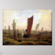 Boats head out to sea in the morning as painted by Caspar David Friedrich.