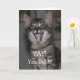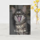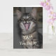 "Yay! You did It!" "Yipee!" "So Smart!" "Great Job!" "WooHoo!" "Fantastic" and "Congratulations Graduate" are all part of the message on this graduation card. On the front of this card is our grey striped kitten, Caspian, in the middle of a big kitten yawn. Her mouth is turned up in a smile and her long pink tongue is fully extended from her toothless mouth making her look extremely excited for your happy graduate.