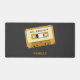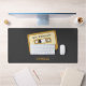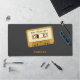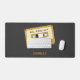 A black Desk Mat with a Cassette Tape and customisable texts for a 80s and 90s nostalgic touch to your office. Perfect to make a gift to a lover of old school music and vintage equipment!